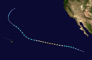 | Keywords: Guillermo 2009 track.png Track map of Hurricane Guillermo of the 2009 Pacific hurricane season The points show the location of the storm at 6-hour intervals The colour represents the storm's maximum sustained wind speeds as classified in the Saffir-Simpson Hurricane Scale see below and the shape of the data points represent the nature of the storm according to the legend below User Nilfanion/Tc/T Created by Cyclonebiskit using Wikipedia WikiProject Tropical cyclones/Tracks The background image is from NASA Tracking data switch source from the National Hurricane Center <sup>http //www nhc noaa gov/pastall shtml</sup> from the Central Pacific Hurricane Center <sup>http //www prh noaa gov/cphc/summaries/</sup> from the Joint Typhoon Warning Center <sup>https //metocph nmci navy mil/jtwc/best_tracks/</sup> from the Japan Meteorological Agency <sup>http //www jma go jp/jma/jma-eng/jma-center/rsmc-hp-pub-eg/besttrack html</sup> from the National Hurricane Center <sup>http //www nhc noaa gov/pastall shtml and the Central Pacific Hurricane Center http //www prh noaa gov/cphc/summaries/</sup> from the Central Pacific Hurricane Center <sup>http //www prh noaa gov/cphc/summaries/ and the Joint Typhoon Warning Center https //metocph nmci navy mil/jtwc/best_tracks/</sup> from the w National Hurricane Center <sup>http //www nhc noaa gov/pastall shtml</sup> or the Joint Typhoon Warning Center <sup>https //metocph nmci navy mil/jtwc/best_tracks/</sup> 2009-08-15 Cyclonebiskit Hurricane Guillermo 2009 2009 Pacific hurricane season track maps Pacific hurricane tracks |
