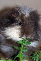 Keywords: guinea pig ch-teddy lilac-icecream-and-white eating dandelion frontal close pet rodent sweet smokie