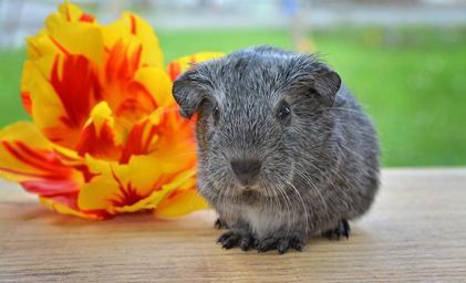 Keywords: guinea pig smooth hair young animal silver black and white agouti rodent animal pet portrait cute agouti sweet small close