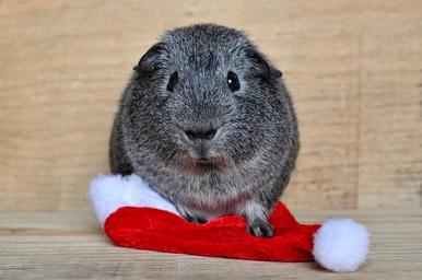 Keywords: guinea pig smooth hair black and white agouti santa hat