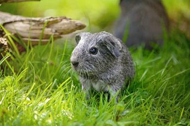 Keywords: guinea pig young animal smooth hair silver black and white agouti meadow grass nature out close nager rodent small animal pet