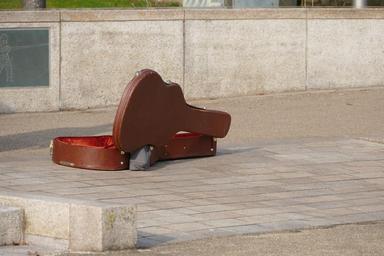 Keywords: guitar case instrument music guitarist outdoors lifestyle musical musician equipment busking busker