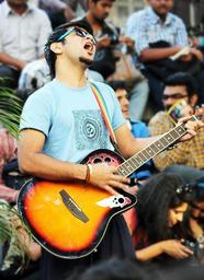 Keywords: guitar guitarist guy playing musician entertainment people performer person instrument jam