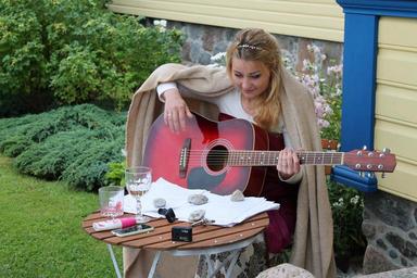 Keywords: guitar hand ring red shadow music singing love happiness wedding blonde nature girl woman dress