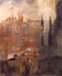 | Keywords: Gulácsy, Lajos - Siege of a Castle (ca 1910).jpg Artwork Creator Lajos Gulácsy ~ 1910 Oil on canvas Size cm 42 52 5 Institution Modern Hungarian Gallery Pécs object history exhibition history credit line accession number 73 33 Fine Arts in Hungary http //www hung-art hu/kep/g/gulacsy/muvek/2/v_ostrom jpg http //www hung-art hu/frames-e html /english/g/gulacsy/muvek/2/v_ostrom html PD-old-70 Paintings by Lajos Gulácsy in the Modern Hungarian Gallery Pécs 1910 paintings in Hungary Files by User Jedudedek Pd-Art upload |