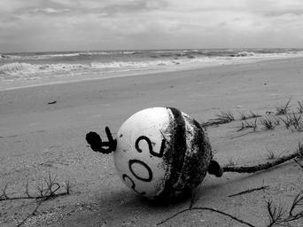 Keywords: gulf coast ocean sea outside sand beach sand nature gulf of mexico beach shore shoreline storm black and white crab trap float hurricane fishing sanibel island florida
