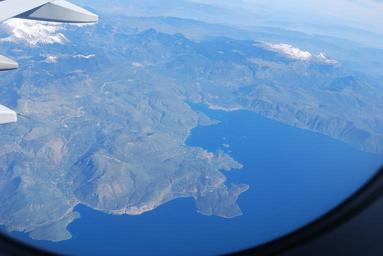 Keywords: Gulf of Corinth.jpg es En primer plano el Golfo de Corinto y la costa meridional de la Grecia central Fócide Al fondo a la derecha el monte Parnaso Entre estas montañas Delfos own Durutomo 2010-03-21 Aerial photographs of Greece
