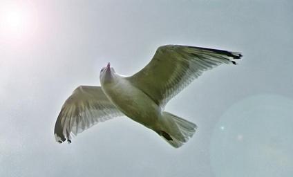 Keywords: gull bird seagull sky soaring flying shore bird