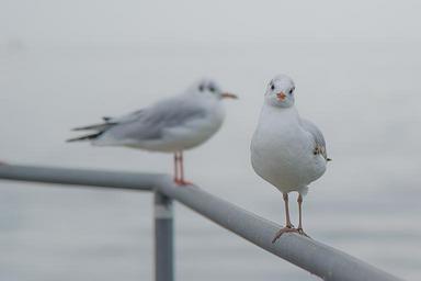 Keywords: gull birds animal sitting seagull sea lake bill waterfowl water close railing