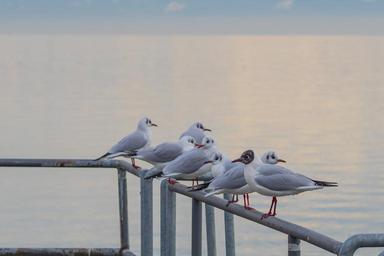 Keywords: gull seemoeve animals voegle water bird web nature lake coast pier seevogel sea distant boardwalk railing
