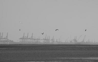 Keywords: gulls bremerhaven port dark water nature norddeutshland coast sea bird sky