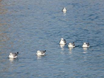 Keywords: gulls water swim formation group