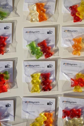 Keywords: gummi bears packed business cards pixabay company sachets mitbringsel cellophane fruit gums bear sweetness colorful color gelatin food nibble gummibärchen bears sweet delicious fruit jelly gold bears haribo