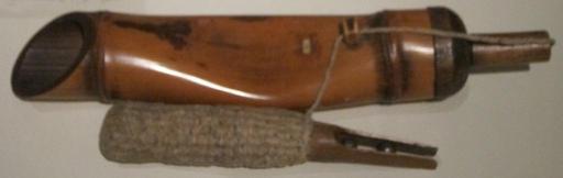 | Keywords: Gunpowder case and ammunition container, Edo period, 18th century, Japan, bamboo, wood, stag antler, twine.JPG en Gunpowder case and ammunition container Edo period 18th century Japan bamboo wood stag antler twine own Haa900 photo 2013 Karasu-guchi Kayaku-ire Bamboo objects Cc-zero |