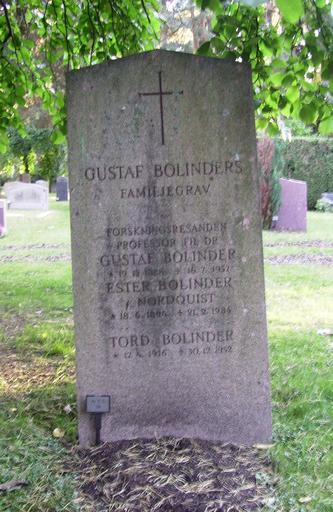 | Keywords: Gustaf Bolinder (1888-1957).JPG en Picture of Gustaf Bolinder's grave at Norra begravningsplatsen in Solna sv Foto av Gustaf Bolinders gravvård på Norra begravningsplatsen i Solna own Raphael Saulus 1888 births Academics from Sweden Men of Sweden 1957 deaths Ethnographers from Sweden Norra begravningsplatsen Graves in Sweden |