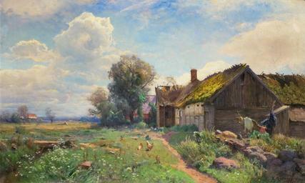 | Keywords: Gustaf Rydberg - Billingestugan.jpg Billingestugan creator Gustaf Rydberg 1919 oil canvas cm 51 81 5 Enligt brev Denna tavla beställdes av mig på uppdrag av min fader hos kungl målaren Gustaf Rydberg hösten 1916 med följande ord; skulle farbror Rydberg vilja måla en tavla till pappa Han svarade; jag är så gammal nu så ser jag dåligt och målar långsamt Vad motiv skulle det vara Det får farbror själv bestämma blev mitt svar Jag hade då några år å rad träffat Gustaf Rydberg i Falsterbo och Skanör där han målade och bodde på Strandhotellet Ett helt år därefter eller hösten 1917 ringde så Gustaf Rydberg upp mig pr telefon och meddelade; Är det Seth Axelson Nu är tavlan färdig och du kan be din far komma upp och se på den Dagen därpå infunno vi oss i Rydbergs våning på Regementsgatan och min fader köpte tavlan Den fick dock ej genast medtagas enär den var osignerad och hämtades först några dagar senare Jag ärvde tavlan efter min faders död år 1926 Detta intygas på heder och samvete Ystad den 28 juli 1945 undertecknat Seth Axelson www uppsalaauktion se Public domain Other versions Gustaf Rydberg 1919 paintings PD-Art |