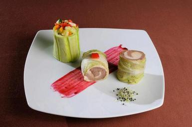 | Keywords: nitu iulian nituiulian meniuri restaurant nunti botezuri festive gustare rece calda fel de baza fratelanutela indoor GUSTARE CALDA - Rulada din piept de pui si piept de rata la cuptor invelita in varza creata sote* Cannelloni de dovlecel cu ragu de legume GUSTARE CALDA - Rulada din piept de pui si piept de rata la cuptor invelita in varza creata sote* Cannelloni de dovlecel cu ragu de legume |