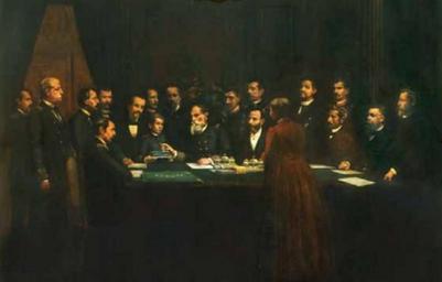 | Keywords: Gustavo Hastoy - Ato de assinatura do projeto da primeira Constituição.jpg Artwork Creator Gustavo Hastoy Act of signing of the first Constitution Ato de assinatura do projeto da primeira Constituição 1891 technique oil canvas cm 290 441 Senado Federal Brasília http //www senado gov br/publicacoes/obrasmuseu/Cat C3 A1logo_do_Acervo_SF pdf Obras de arte do Senado Federal - catálogo do acervo Other versions PD-old-auto 1931 Gustavo Hastoy 1891 paintings 1890s paintings from Brazil Senado Federal do Brasil Brazil in history paintings |