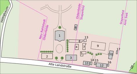 | Keywords: Gut Höltigbaum 1921.svg de SVG Grafik nach einer Karte von 1921 vom Gut Höltigbaum aus dem Buch Unser Oldenfelde Höltigbaum_1921 jpg 50 MagentaGreen 26 11 15 <gallery> Gut Höltigbaum 2015 svg Plan 2015 </gallery> other fields Die Nummern im Bild bezeichnen die Gebäude wie folgt <br /> 1 Herrenhaus Höltigbaum<br /> 2 Scheune<br /> 3 Kuhstall<br /> 4 Pferdestall<br /> 5 Elektrizitätswerk<br /> 6 Remise I<br /> 7 Remise II<br /> 8 Waschhaus<br /> 9 Kornscheune<br /> 10 Verwalterhaus<br /> 11 Arbeiterhaus<br /> 12 Arbeiterhaus<br /> 13 Eishaus<br /> 14 “17 Ställe<br /> <br /> Gebäude die im Jahr 2015 noch erhalten waren sind grau gefüllt dargestellt <br /><br /> validSVG <br /> Herrenhaus Höltigbaum |