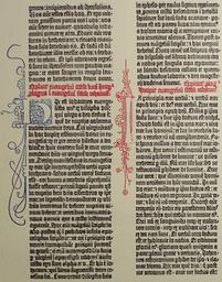 Keywords: GutenbergMuseumPrint.JPG Gutenberg Museum print This sample page is a copy of The 42-line Gutenberg Bible Vol 2 sheet 235th photo of my pressing 2003-12-19 Randal J Johannes_Gutenberg Printing Gutenberg Museum PD-old-100