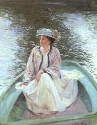 Keywords: Guy Rose - On the River.jpg Oil canvas cm Private collection object history credit line accession number user Rlbberlin PD-old-auto 1925 Guy Rose Paintings of women sitting in boats 1908 paintings
