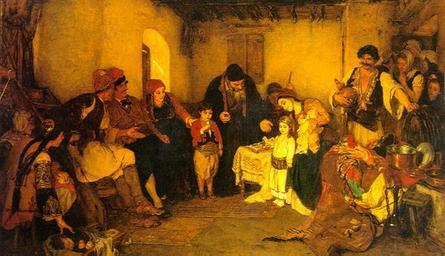 | Keywords: Gyzis 005.jpeg Τα αρραβωνιάσματα Ta arravoniasmata The Engagement Les Fiançailles Creator Nicholas Gysis 1875 Oil on canvas cm 156 104 Institution National Gallery of Greece http //www paletaworld org/Images asp id 1924 PD-old-100 Other versions Nicholas Gysis |