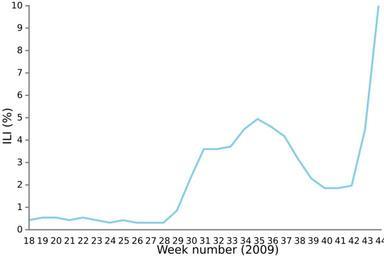 | Keywords: H1N1 ILI Surveillance Norway 2009.svg en A graph of influensa-like illness as a percentage of all doctor contacts in the Norwegian governments influenza sentinel system from week 18 Early May to week 44 late October 2009 The sentinel system is a collection of 201 general practices that report the percentage of influensa-like illness as a percentage of all doctor contacts These practices are spread out over the whole country and represent about 15 of the population own Janbrogger 2009-11-06 The data in this chart are taken from the Norwegian Public Health Institute update on influenza surveillance on November 4th 2009 at http //www fhi no/eway/default aspx pid 233 trg MainLeft_5565 MainArea_5661 5565 0 15 1214 1 0 0 0 0 MainLeft_5565 5544 80997 1 5569 1 0 0 2009 swine flu outbreak in Norway 2009 swine flu outbreak graphs |