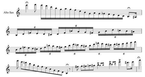 | Keywords: H. Benne Henton cadenza.png en Saxist H Benne Henton ™s alto sax cadenza to his own composition Eleven O ™Clock published in C G Conn ™s Musical Truth in 1912 demonstrating his use of the altissimo register de Die Kadenz zum vom Altsaxophonisten H Benne Henton selbst komponierten Stück Eleven O ™Clock veröffentlicht in C G Conn ™s Musical Truth 1912 verdeutlicht Hentons Fertigkeiten im Tonbereich Altissimo Stephen Cottrell The Saxophone Yale University Press New Haven 2013 page 162 H Benne Henton 1911 Sheet music examples Sheet music from the United States H Benne Henton Cc-zero |