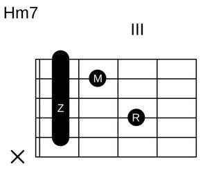 Keywords: H-Moll-7 Barré.svg Guitar Accord H-Minor-7 Own 2007-03-03 Stefan Ott Guitar chords in standard tuning