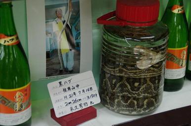 Keywords: Habu-Sake in Amami-Oshima.jpg en Habu Sake in Amami Oshima Amami Kagoshima Japan ja 奄美大島のハブ酒 Ozizo's file Ozizo 2009-07-23 Sake Amami Oshima Snakes as food People with snakes