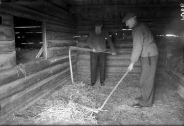 | Keywords: jordbruk kultur kulturminner landbruk mennesker museer verktøy og redskaper verktøyogredskaper sliul oppland norge nor monochrome blackandwhite black and white To menn tresker. Fra Hadeland Folkemuseum. To menn tresker. Fra Hadeland Folkemuseum. |
