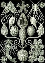 | Keywords: Haeckel Amphoridea.jpg See http //caliban mpiz-koeln mpg de/haeckel/kunstformen/high/Tafel_095_schema_300 html here for index to numbers Placocystis crustacea <small> Haeckel </small> Enoploura balanoides <small> Meek 1872 </small> 1a from above 1b from below See Echinodermata Pleurocystis filitexta <small> Billings </small> Pleurocystites filitextus <small>Billings 1854</small> 2a from above 2b from below See Pleurocystites Orocystis Helmhackeri <small> Barrande </small> Orocystites helmhackeri <small> Barrande 1887 </small> 3b single armour plate See Rhombifera Deutocystis modesta <small> Barrande </small> Echinosphaerites sp juvenile See Echinosphaerites Citrocystis citrus <small> Haeckel </small> / Echinosphaera citrus <small> Kloeden </small> Echinosphaerites kloedeni <small>Jaekel 1899</small> 5b 5c single armour plates See Echinosphaerites Acanthocystis briareus <small> Barrande </small> Acanthocystites briareus <small>Barrande 1887</small> See Gogiida Aristocystis bohemica <small> Barrande </small> Aristocystites bohemicus <small>Barrande 1887</small> single armour plate See Echinodermata Ophiothrix fragilis <small> J Müller </small> Ophiothrix fragilis <small> Abildgaard 1789 </small> juvenile See Ophiothrix fragilis Pluteus bimaculatus <small> J Müller </small> / Ophiura filiformis Ophiuridae sp pluteus larva See Ophiuridae Plutellus aequituberculatus <small> J Müller </small> / Echinocidaris aequituberculata Arbacia lixula <small> Linnaeus 1758 </small> pluteus larva See Arbacia lixula Bipinnaria asterigera <small> J Müller </small> / Luidia sarsi Luidia sarsi <small>Düben Koren 1845</small> bipinnaria larva See Luidia sarsi Auricularia nudibranchiata <small> Chun </small> Protankyra brychia <small> Verrill 1885 </small> auricularia larva See Protankyra brychia Kunstformen der Natur 1904 plate 95 Amphoridea see http //caliban mpiz-koeln mpg de/haeckel/kunstformen/high/Tafel_095_300 html here http //caliban mpiz-koeln mpg de/haeckel/kunstformen/high/Tafel_095_schema_300 html here http //caliban mpiz-koeln mpg de/haeckel/kunstformen/high/Tafel_095_text_1_200 html here and http //caliban mpiz-koeln mpg de/haeckel/kunstformen/high/Tafel_095_text_2_200 html here creator Ernst Haeckel 1904 public domain due to age File Haeckel Amphoridea-1a jpg File Haeckel Amphoridea-1b jpg File Haeckel Amphoridea-2a jpg File Haeckel Amphoridea-2b jpg File Haeckel Amphoridea-3 jpg File Haeckel Amphoridea-3b jpg File Haeckel Amphoridea-4 jpg File Haeckel Amphoridea-5 jpg File Haeckel Amphoridea-5b jpg File Haeckel Amphoridea-5c jpg File Haeckel Amphoridea-6 jpg File Haeckel Amphoridea-7 jpg File Haeckel Amphoridea-8 jpg File Haeckel Amphoridea-9 jpg File Haeckel Amphoridea-10 jpg File Haeckel Amphoridea-11 jpg File Haeckel Amphoridea-12 jpg PD-old Kunstformen der Natur 1904 Echinodermata Pleurocystites Rhombifera Echinosphaerites Gogiida Ophiothrix fragilis Ophiuridae Arbacia lixula Luidia sarsi Protankyra brychia Science and technology in art |