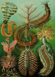 | Keywords: Haeckel Chaetopoda-edit.jpg See http //caliban mpiz-koeln mpg de/haeckel/kunstformen/high/Tafel_096_300 html here for index to numbers Sabella spectabilis <small> Grube </small> Sabellastarte spectabilis <small> Grube 1878 </small> Serpula contortuplicata <small> Linné </small> Hydroides norvegicus <small>Gunnerus 1768</small> Spirographis spallanzanii <small> Viviani </small> Sabella spallanzanii <small> Gmelin 1791 </small> Terebella emmalina <small> Quatrefages </small> Pista cretacea <small> Grube 1860 </small> Eunice magnifica <small> Quatrefages </small> Eunice magnifica <small>Grube 1866</small> Hermione hystricella <small> Quatrefages </small> Hermione hystricella <small>Milne-Edwards in Cuvier 1836</small> Cloëia euglochis <small> Ehlers </small> Chloeia viridis <small>Schmarda 1861</small> Kunstformen der Natur 1904 plate 96 Chaetopoda see http //caliban mpiz-koeln mpg de/haeckel/kunstformen/high/Tafel_096_300 html here http //caliban mpiz-koeln mpg de/haeckel/kunstformen/high/Tafel_096_text_1_200 html here and http //caliban mpiz-koeln mpg de/haeckel/kunstformen/high/Tafel_096_text_2_200 html here creator Ernst Haeckel 1904 PD-old <gallery>File Haeckel Chaetopoda jpg Original scan</gallery> Assessments 1 Kunstformen der Natur 1904 Polychaeta in art Sabellastarte spectabilis Hydroides norvegicus Pista cretacea Sabella spallanzanii Eunice magnifica Hermione hystricella Chloeia viridis Featured pictures of animals |