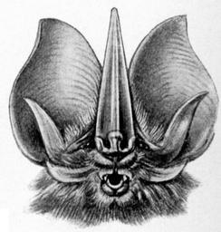 | Keywords: Haeckel Chiroptera Lonchorhina aurita 2.jpg Lonchorhina aurita <small> Tomes </small> Lonchorhina aurita <small>Tomes 1863</small> head from front Tomes's Sword-nosed Bat Detail of the 67th plate from Ernst Haeckel's Kunstformen der Natur 1904 1904 creator Ernst Haeckel Haeckel Chiroptera jpg PD-old Bats in art Kunstformen der Natur - derivative Lonchorhina aurita Phyllostomidae heads | ||||