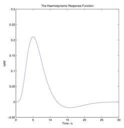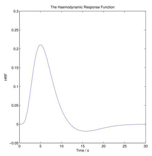 Keywords: Haemodynamic response function.svg en The canonical haemodynamic response function From SPM plotted using MATLAB own Lionfish0 2011-01-13 Hemodynamics