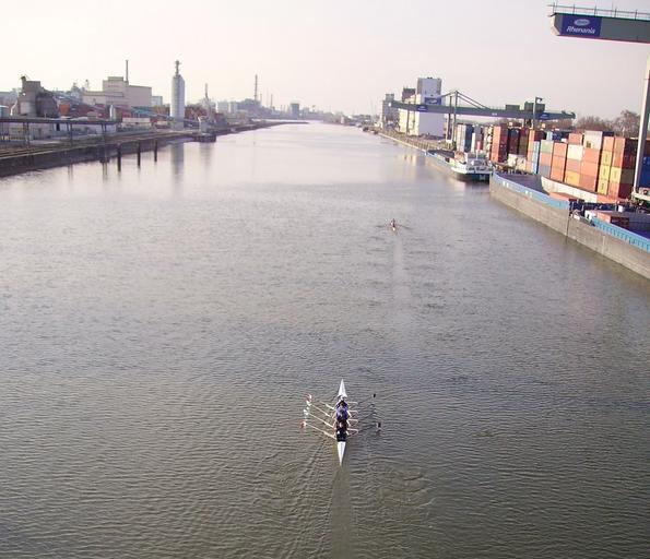 Keywords: Hafenanlage Mannheim Ruderer.jpg Description harbour of Mannheim Germany Source own photography --Immanuel Giel 12 07 2 May 2006 UTC Port of Mannheim