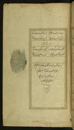 | Keywords: Hafiz - Colophon - Walters W631172A - Full Page.jpg This folio from Walters manuscript W 631 contains a colophon in partly vocalized Arabic in the shape of a triangle The colophon gives the date of copying islamic 1539 946 Safavid ink pigments laid paper cm 22 13 accession number W 631 172A 82793 Henry Walters Baltimore date and mode of acquisition unknown Walters Art Museum Henry Walters Acquired by Henry Walters Transliteration place of origin Iran Walters Art Museum license 2D Divan by Hafez Safavid Walters MS 631 |