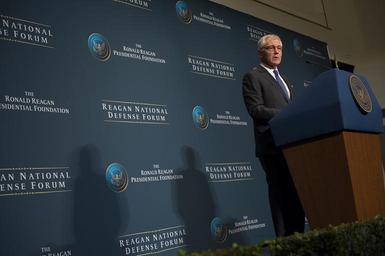 | Keywords: Hagel Reagan Defense Forum 2014.jpg en Secretary of Defense Chuck Hagel makes remarks during the Reagan National Defense Forum at The Ronald Reagan Presidential Library in Simi Valley Calif Nov 15 2014 Hagel is on a trip visiting troops across the continental United States DoD photo by Petty Officer 2nd Class Sean Hurt/Released 2014-11-14 19 00 00 U S Department of Defense Petty Officer 2nd Class Sean Hurt other versions PD-USGov Uploaded with UploadWizard Uncategorized 2014 December 3 | ||||