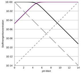 Keywords: Hägg-Diagramm Essigsäure.svg Hägg-Diagramm von Essigsäure 1 mol/l <br /> Verwendeter pK<sub>a</sub>-Wert 4 76 Own Leyo 2009-01 Leyo Acetic acid Speciation diagrams
