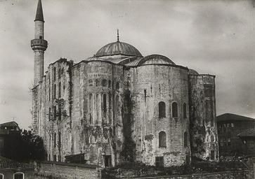 | Keywords: salt araştırma saltaraştırma salt research saltresearch salt online saltonline gül camii gülcamii hagia theodosia kilisesi hagiatheodosiakilisesi ayia theodosia ayiatheodosia doğu roma dönemi doğuromadönemi adile sultan halk kütüphanesi adilesultanhalkkütüphanesi byzantine bizans ayakapı i̇stanbul istanbul gül mosque gülmosque hagia theodosia church hagiatheodosiachurch byzantine period byzantineperiod adile sultan public library adilesultanpubliclibrary outdoor architecture monochrome building skyline www.archives.saltresearch.org/R/QQHIB5N6USCTV72JLBC36ACKA... Hagia Theodosia Church, (Gül Mosque today), located in Ayakapı in İstanbul, is a religious building from the Byzantine period. It was built during the 10th or 11th centuries. After the conquest of İstanbul, the building served local shipyards as a warehouse for shiping equipment. It was converted into a mosque in 1499 and a minaret was added to the building during the period of Selim II. After being destroyed by fire in 1633, the building was renovated. A further, more extensive restoration was undertaken on the order of Mahmud II (1808-1839). After being used as the Adile Sultan Public Library for some years, the building is empty today. SALT Research, Photography Archive Gül Camii olarak bilinen Hagia Theodosia Kilisesi Ayakapı’da yer alır. Doğu Roma döneminden kalma yapının 10. ya da 11. yüzyılda inşa edildiği düşünülmektedir. Kilise, İstanbul’un fethinden sonra bir süre, Haliç’teki tersanelerin malzeme deposu olarak kullanıldı. 1499’da camiye çevrildi, II. Selim zamanında minaresi eklendi. 1633’te geçirdiği bir yangının ardından onarılsa da, geniş kapsamlı onarımı II. Mahmut zamanında (1808-1839) gerçekleştirildi. Bir dönem Adile Sultan Halk Kütüphanesi olarak kullanılan yapı bugün atıl vaziyette durmaktadır. SALT Araştırma, Fotoğraf Arşivi www.archives.saltresearch.org/R/QQHIB5N6USCTV72JLBC36ACKA... Hagia Theodosia Church, (Gül Mosque today), located in Ayakapı in İstanbul, is a religious building from the Byzantine period. It was built during the 10th or 11th centuries. After the conquest of İstanbul, the building served local shipyards as a warehouse for shiping equipment. It was converted into a mosque in 1499 and a minaret was added to the building during the period of Selim II. After being destroyed by fire in 1633, the building was renovated. A further, more extensive restoration was undertaken on the order of Mahmud II (1808-1839). After being used as the Adile Sultan Public Library for some years, the building is empty today. SALT Research, Photography Archive Gül Camii olarak bilinen Hagia Theodosia Kilisesi Ayakapı’da yer alır. Doğu Roma döneminden kalma yapının 10. ya da 11. yüzyılda inşa edildiği düşünülmektedir. Kilise, İstanbul’un fethinden sonra bir süre, Haliç’teki tersanelerin malzeme deposu olarak kullanıldı. 1499’da camiye çevrildi, II. Selim zamanında minaresi eklendi. 1633’te geçirdiği bir yangının ardından onarılsa da, geniş kapsamlı onarımı II. Mahmut zamanında (1808-1839) gerçekleştirildi. Bir dönem Adile Sultan Halk Kütüphanesi olarak kullanılan yapı bugün atıl vaziyette durmaktadır. SALT Araştırma, Fotoğraf Arşivi |