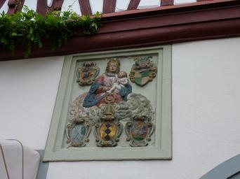 | Keywords: Hagnau Löwen Wappen und Maria.jpg Fassadenschmuck am Löwen in Hagnau self-photographed 2010 --Xocolatl <span class signature-talk >talk</span> 18 48 19 June 2010 UTC s u <gallery> File Hagnau Löwen Detail 1 jpg dort genauere Erläuterung der Wappen </gallery> Gasthof zum Löwen Hagnau Reliefs of coats of arms in Bodenseekreis Reliefs of Madonna and Child in Germany Coats of arms of Einsiedeln Abbey Coats of arms of Ellerbach family | ||||