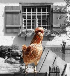 Keywords: hahn farm animal male fowl cockscomb pride chicken run agriculture strut portrait