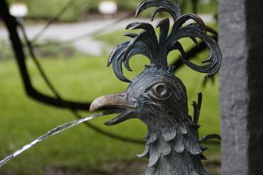 Keywords: hahn fountain metal sculpture animal bird gargoyle spit water jet statue