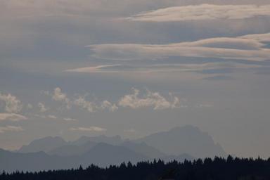 Keywords: hair dryer landscape mountains alpine upper bavaria autumn trees blue grey distant view sky nature zugspitze clouds föhn clouds