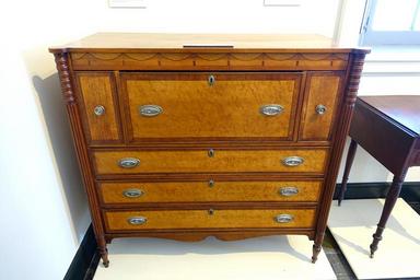 | Keywords: Half sideboard with swag-and-tassel frieze, Windsor County VT, 1810-1815, cherry, pine, basswood, with mahogany and maple inlay - Bennington Museum - Bennington, VT - DSC08817.JPG en Exhibit in the Bennington Museum - Bennington Vermont USA This work is in the public domain because the artist died more than 70 years ago Photography was permitted in the museum without restriction 2015-02-28 13 41 48 own Daderot other versions PD-old-70 cc-zero Furniture in the Bennington Museum Furniture from Vermont |