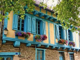 Keywords: half timbered windows historic medieval traditional facade structure wooden heritage blue architecture