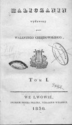 Keywords: Haliczanin 1 cover.jpg en Haliczanin cover 1830 Lviv pl Okładka 1 tomu almanachu Haliczanin wydanego we Lwowie w 1830 Haliczanin http //www wbc poznan pl/dlibra/docmetadata id 120891 from publication author 1830 Magazines of Poland PD-old