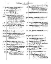 | Keywords: Haliday Misc.JPG Haliday Ms Catalogus in Capsulum In English Catalogus in Capsulum means Catalogue of the little box Capsulum means in a condensed or compact form This is the first page The catalogue which is in Haliday's best handwriting lists the contents of Alexander Haliday ™s early cabinet of his valuable specimens That is to say his type specimens and very carefully mounted specimens of insects collected in Holywood Co Down A few survivors sent to Hermann Loew and misleadingly labelled Dublin by Loew are conserved in the Museum für Naturkunde in Berlin It is to be distinguished from his general collection The MfN specimens Tipulidae Tipula dispar Haliday 1833 155 A single direct pinned specimen on a long German pin- 2/3 way up 1st label Dublin in Haliday's hand/2nd label Tipula dis par Halid Ent M I I55 Loew's hand-writing and Type star Black ink on white card/ 3rd label tiny lilac label/4 th label printed 9156/5th label red printed Typus Geranomyia unicolor Haliday 1833 155 A single carded specimen on a long German pin 1st label unicolor/Hal Loew's hand-writing and Type star Black ink on white card /2nd label printed 8606 3 rd label Red Holotypus mihi Ula mollissima Haliday 1833 153 A single beautifully carded specimen 1st label Dublinin Haliday's hand/2nd label printed 6205/3rd label England sic Dublin 4 th label printed H Loew/5th label Ula mollissima Hal Ent Mag 1Loew's hand Black ink on white card Bibionidae Photocopy of RESL document 1840 Alexander Henry Haliday 1807-1870 Alexander Henry Haliday PD-old |