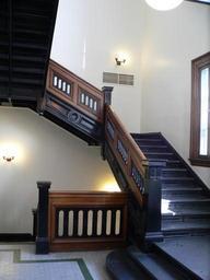 | Keywords: Hall County Courthouse (Nebraska) interior staircase.JPG Interior staircase in Hall County Courthouse Nebraska Hall County Courthouse located at the intersection of First and Locust Streets in Grand Island Nebraska Grand Island Nebraska United States Built in 1901 the courthouse is listed on the National Register of Historic Places own 2010-01-08 Ammodramus Pictures by Ammodramus Taken with Panasonic Lumix DMC-FZ20 Hall County Courthouse Nebraska Staircases in the United States Stairs in Nebraska |