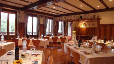Keywords: hall dining tables chairs glasses eat drink festival decoration club local restaurant brown window